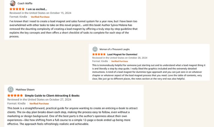 If you haven’t written your free e-book yet, no worries, you can plan, write, and design your lead magnet e-book in just 6 days with my book, Lead Magnet Formula.